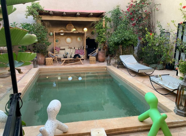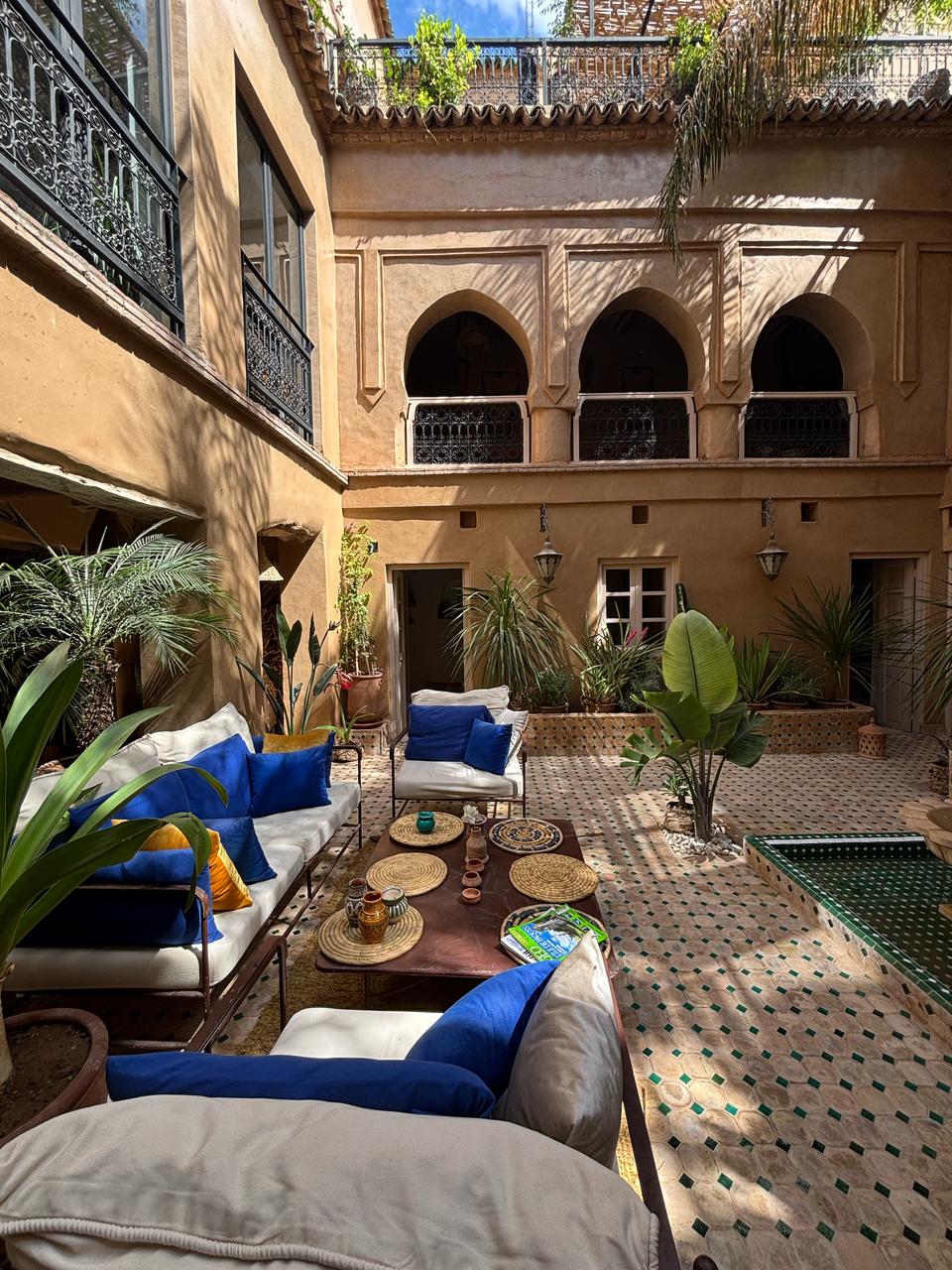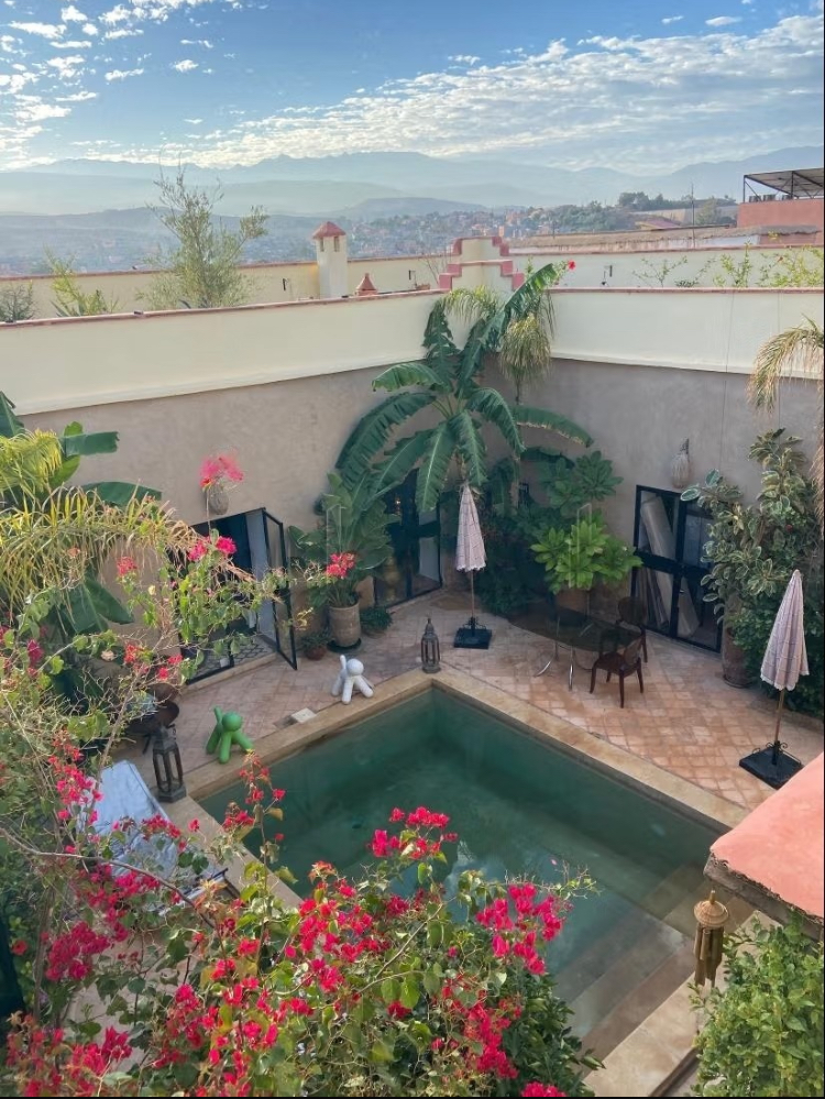 A vendre Riad d’exception meublé, alliance rare de tradition et de raffinement. Situé dans un cadre enchanteur, ce Riad meublé incarne l’élégance et le savoir-faire artisanal Marocain. Derrière ses portes, un patio luxuriant de 50 m² vous accueille, orné d’une fontaine et d’une piscine-jucuzzi chauffée, offrant une atmosphère de sérénité absolue. Ce joyau de 300 m² habitables ( 180 m² au sol) propose : * 4 suites somptueuses avec salle de bains privative * 2 salons raffinés propices à la détente et à la réception * cuisine équipée et arrière-cuisine fonctionnelle * vestibule accueillant sublimé par des banquettes traditionnelles * Terrasse aménagée avec espace de vie extérieur * Hammam traditionnel beldi pour des moments de bien-être incomparables. Chaque espace a été pensé pour marier confort moderne et authenticité, avec une climatisation intégrale et des finitions haut de gamme. Le bien est vendu avec TITRE FONCIER ET PLAN CADASTRAL. Un Riad d’exception, prêt à vous accueillir où à devenir une propriété d’investissement unique dans l’art de vivre Marocaine.