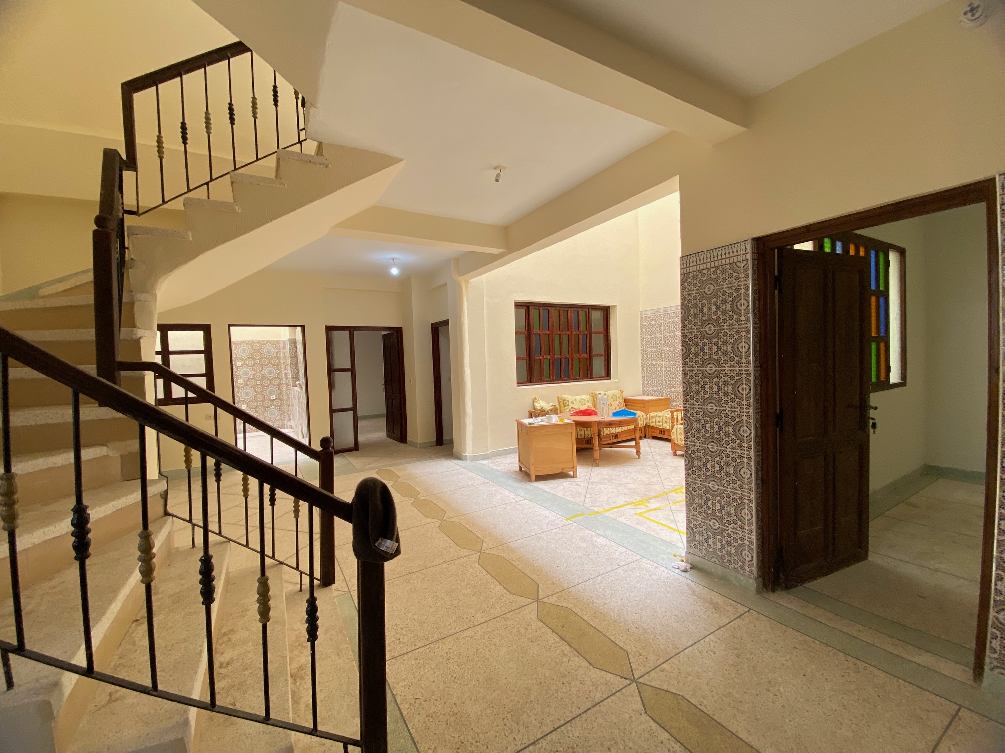 AGADIR quartier El Houda A vendre maison style Riad avec un énorme potentiel soit pour une grande famille ou projet touristique, situé proche de tout commerces et animations. Ce bien vous offre en RDC entrée sur un salon, cuisine, 2 chambres, 2 salles de bains avec wc, garage. 1er et 2 ème étage 4 chambres avec salles de bains et wc. toît terrasse ( 2 terrasses). Maison de 340 m² avec 10 chambres avec salles de bains. A visiter au plus, coup de coeur assuré !!!